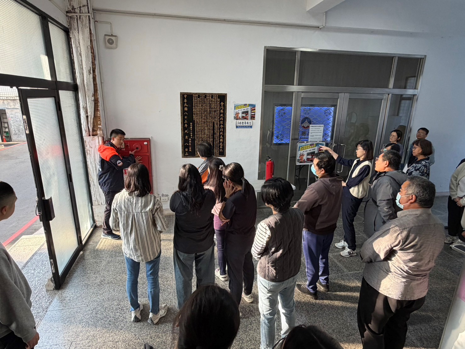 金門縣政府11月24日下午在本府多媒體簡報室舉辦114年下半年度自衛消防編組演練,共有70名縣府各單位員工參加,並邀請金城消防局講師實地授課。演練課程包括消防常識、器材操作介紹及滅火訓練滅火器、CPR及AED分組任務等綜合演練。